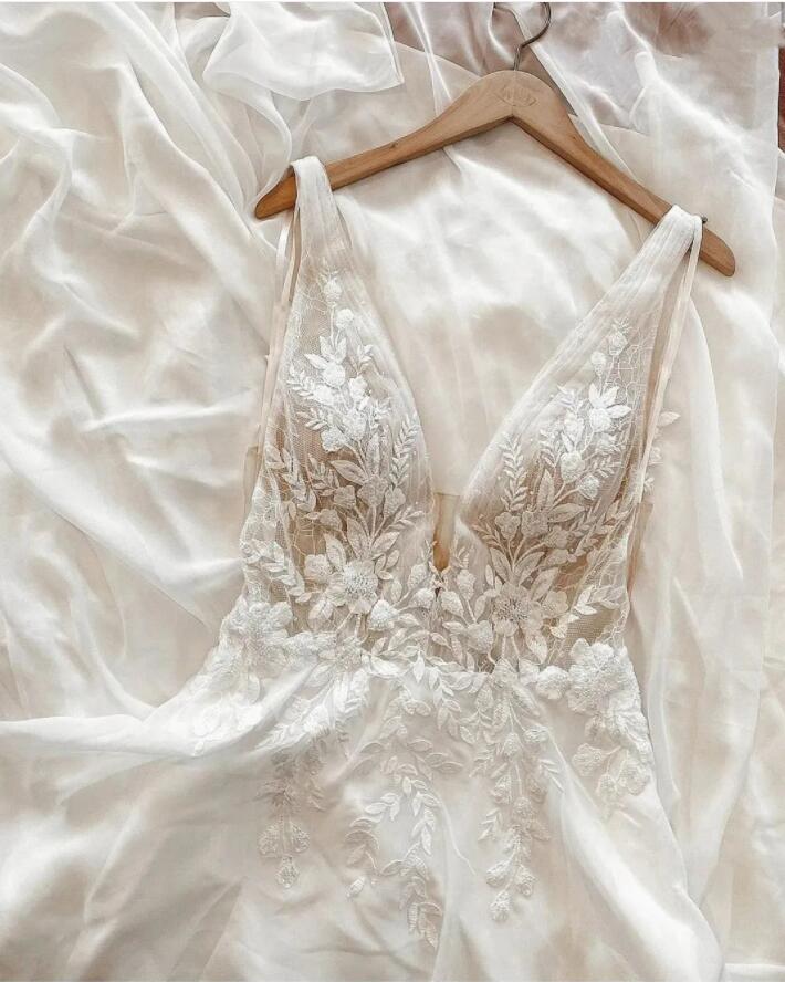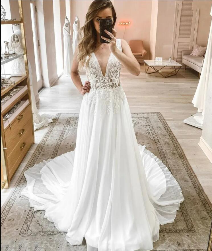 Princess Wedding Dress V-Neck Sleeve Boho Rustic Civil Floor length Sweep Train Chiffon Robe De Mairee Charming For Women